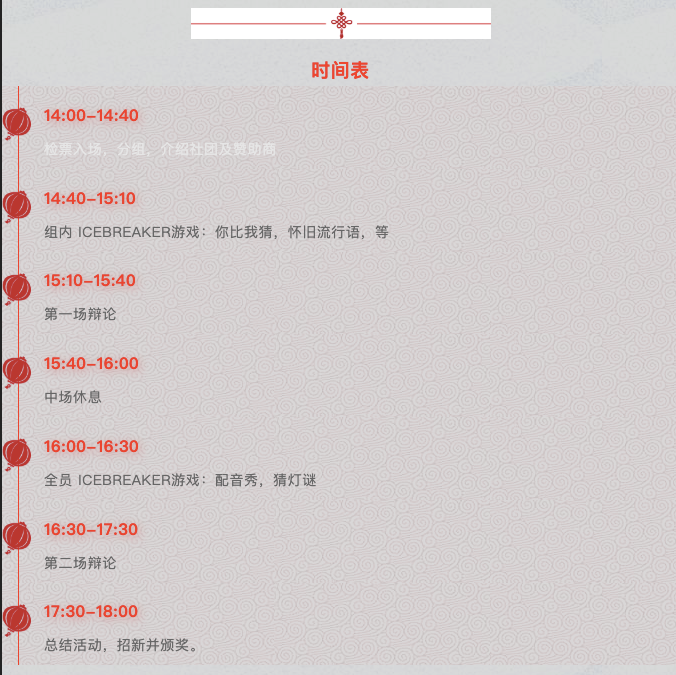 我们这次主办华语辩盟icebreaker春节特别活动,不仅是希望UBC&SFU的中国留学生们能聚在一起过春节,更是希望大家通过我们社团的介绍,能对华语文化和辩论有更深的了解。